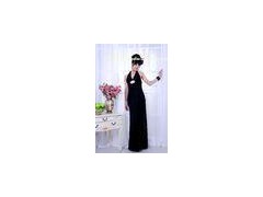 | US letter Deep Neckline Sleeveless Naked Back Ladies Casual Dresses , Sexy Floor Length Evening Dress |